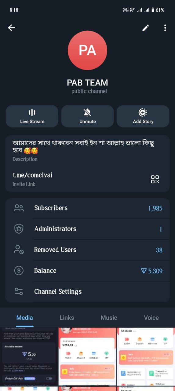 1.9K Mumber Active & monetized Telegram Channel Sell